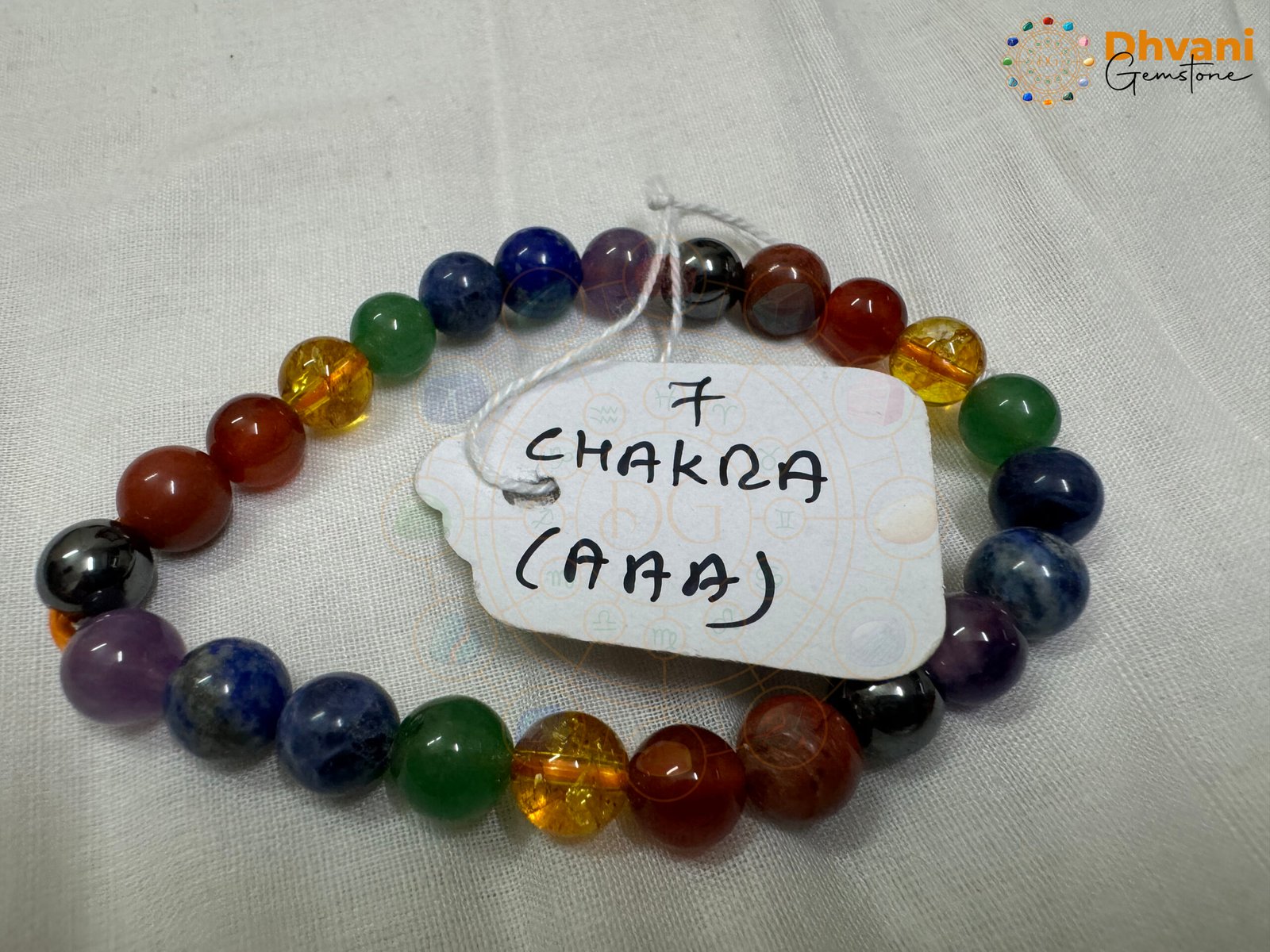 The dyed 7-Chakra bracelet features stones representing each chakra, promoting balance and harmony. It enhances energy flow, spiritual growth, and overall well-being. The vibrant dyed stones provide a unique and colorful appearance. Associated with all Chakras, it fosters balance and alignment.