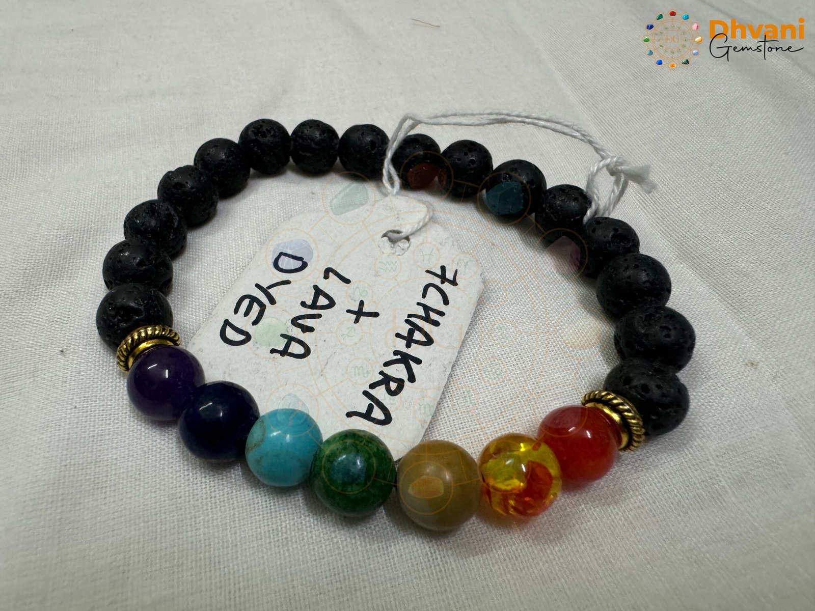 The 7-Chakra bracelet with dyed lava stones combines chakra balancing with grounding and protection. Dyed lava stones enhance strength and courage, aiding in emotional stability and stress relief. The 7-Chakra stones promote energy flow and spiritual growth. Associated with all Chakras, it provides balance and grounding.