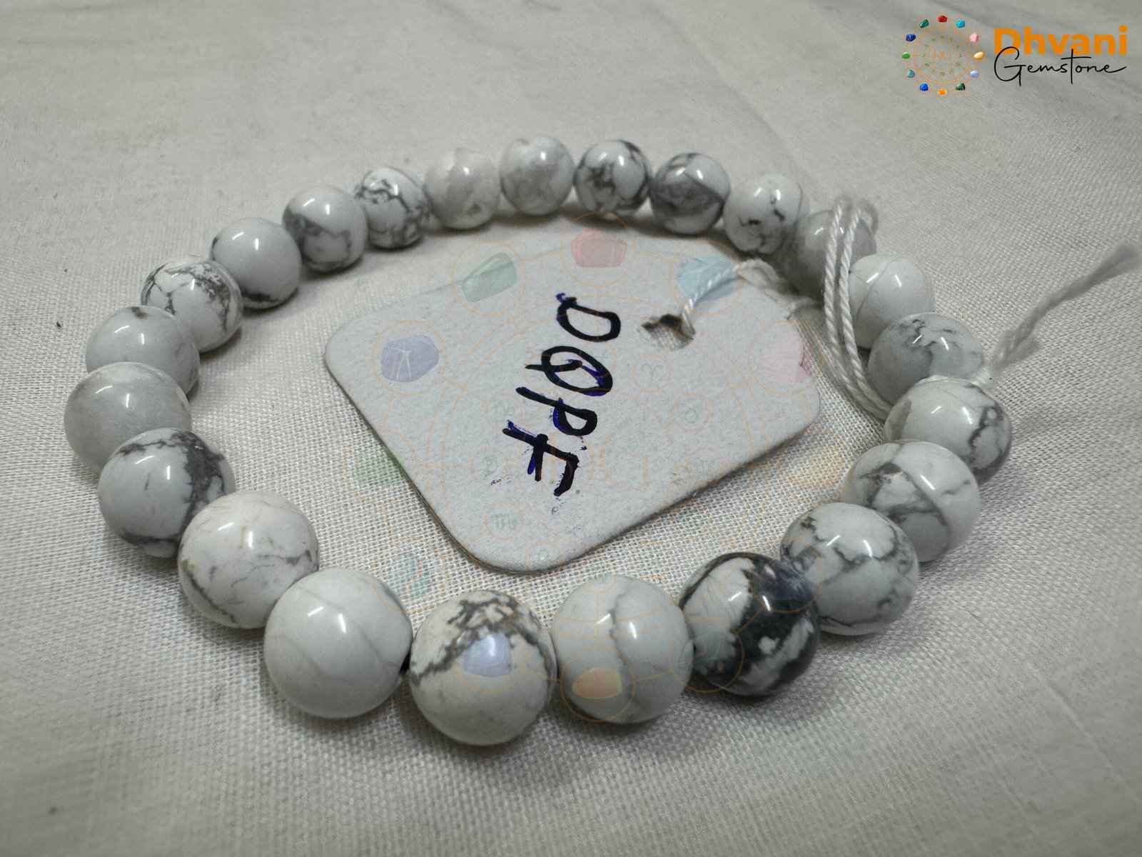 Howlite, a white or light gray mineral with veining, is a calming stone that relieves stress and anxiety. Enhancing patience and reducing anger, Howlite promotes restful sleep and assists in meditation. Associated with the Crown Chakra, it aids in spiritual awareness and communication.